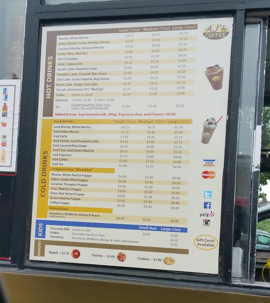 AJ's Coffee Menu